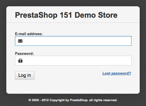 - Go to the login screen for the Prestashop backoffice. It will look like this:
