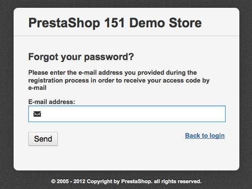 PrestaShop provides a way to recover the password either automatically through email, or by manually resetting the password in the Administrator Dashboard interface. Lost passwords can be recovered through email, provided that the email address is remembered the email account accessed. Manual change of passwords can be done for the employees and administrators, but someone will need to be logged in as the administrator for this to happen. The following article explains how to reset the password for all employees of the shop both through email and through the backoffice interface in PrestaShop 1.5.