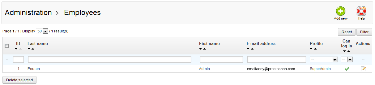 Resetting the Administrator or Employee Passwords using the Administrator Dashboard in PrestaShop 1.5
