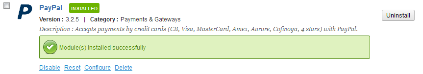 Paypal is a gateway for accepting payments for purchases that can be used in PrestaShop. In order to be used, the Paypal module must be installed and configured. For more information on installing modules see How to Install Modules in PrestaShop 1.5. The following article explains how to install the module in PrestaShop 1.5.