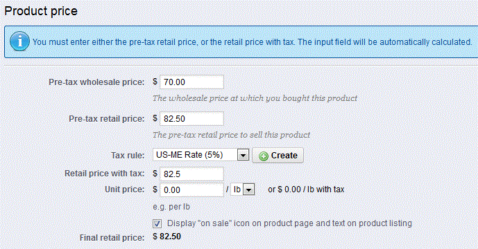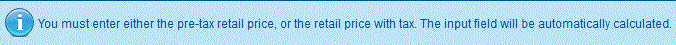 t. The informational note is a little misleading because it asks you to enter either the pre-tax retail price or the retail price with tax. This information is used to help you calculate the profit you will get when selling your product. If you enter the retail price with tax, make sure that your tax rule information (which follows these entries) is set correctly