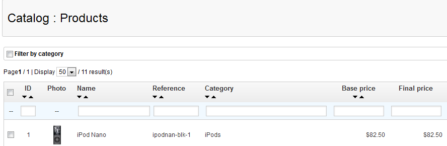 Setting the pre-tax wholesale and retail price is primarily for the shop administrator's or owner's benefit. This information allows PrestaShop to determine business costs for the products you sell. As per the informational note, once the pricing has been added, the "input field will be automatically calculated." This total is the price that the customer will see in the storefront. The following is what will be seen as the final price by an administrator viewing the catalog: