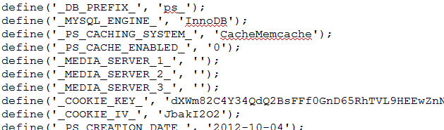 - You will need to first acquire the Cookie key which can be found in the SETTINGS.PHP file in your PrestaShop installation directory. Open the File Manager in Cpanel and then go to the CONFIG folder found in your PrestaShop 1.5 installation directory. The screenshot below shows the CONFIG folder contents in the column at right:
