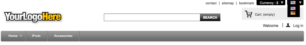 Languages are a vital portion for your website in serving your customers. You are able to select more than one so that a customer can select more another language for your store. Here are two screenshots that show this option in action. The administrator screen displays settings for having both American English and German languages enabled. The second screenshot shows where the customer can select the language: