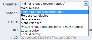 The expert mode has the option for CHANNELS which allows you to upgrade to a non-official or unstable release. You can also choose to load the version from a local directory if you have manually downloaded the updated file. Here are the options in the drop down for the CHANNEL option: