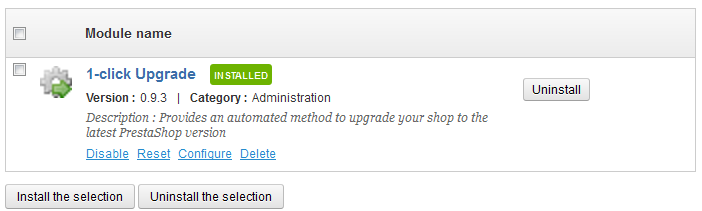 | Upgrade the "default" theme | Upgrades the default PrestaShop theme; note that if you have customizations, then they would be lost |