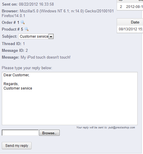 Good communication between your clients and store personnel is the key to good customer service. Make sure to consistently review the customer responses in CUSTOMER SERVICE in a timely manner. Replies to the customer will arrive via the email that the customer has provided to the store.
