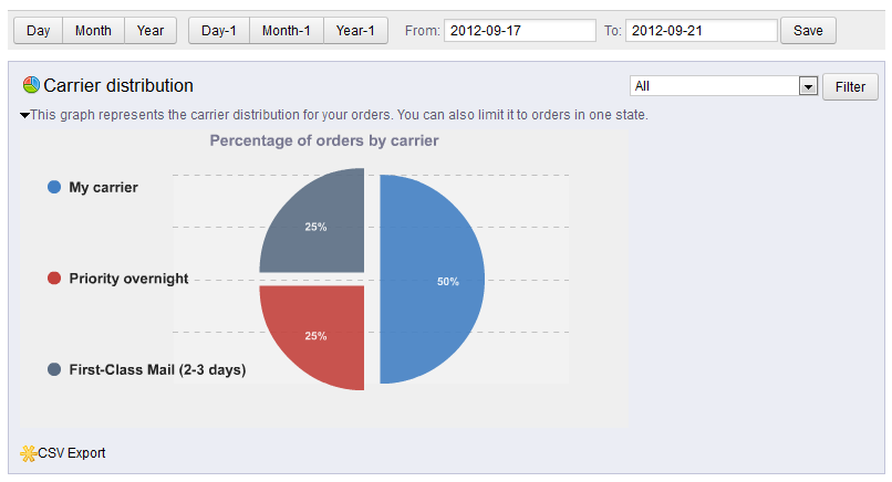 A common cost for any online store selling goods is the cost of shipping. Identifying your carrier data allows you to track who is shipping your product. The following article explains the carrier distribution statistics report within PrestaShop 1.5.