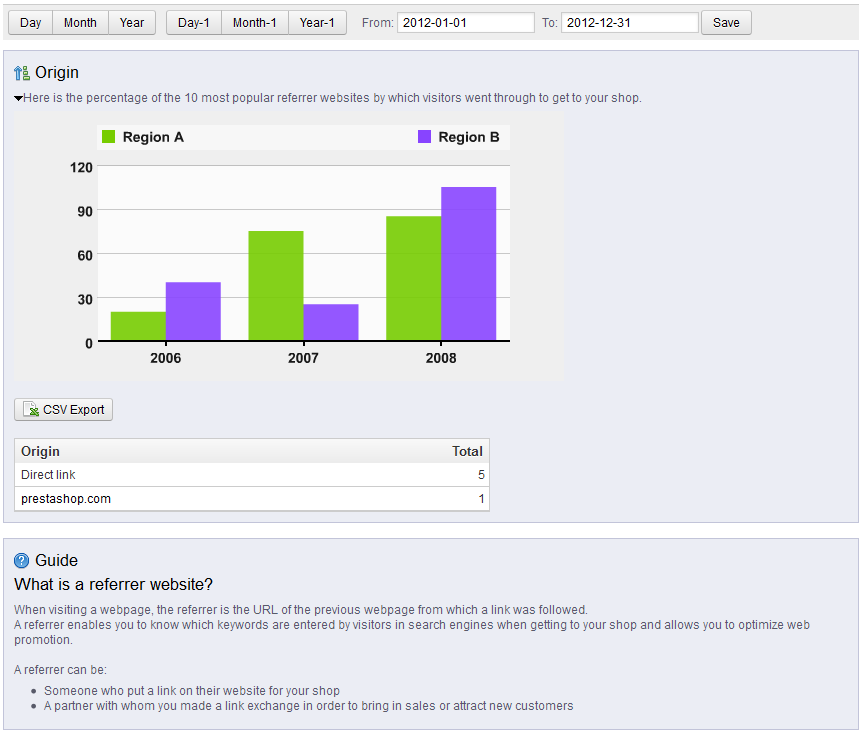Viewing the Visitors Origin Reports in PrestaShop 1.5