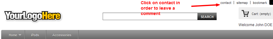 The following screenshots show where a customer would add their feed back to the webmaster, customer service or other store personnel: