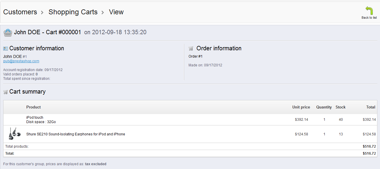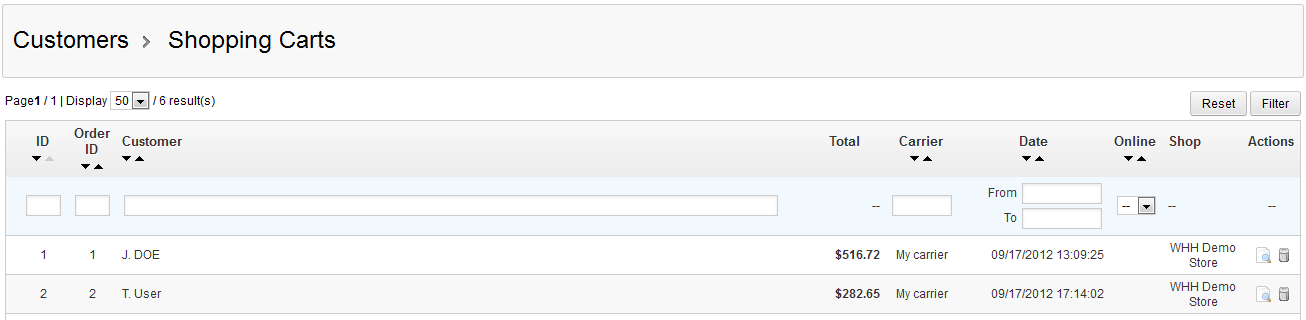 The virtual equivalent of the container that holds the items you've selected for purchase in an online store is the shopping cart. Looking at your customer's carts can help you spot trends with the shop or shops that you are managing. The following tutorial explains how to view recorded customer shopping carts in PrestaShop 1.5.