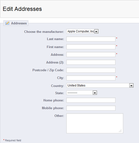 City, address, and name are the required fields for the manufacturer address. Make sure they are added correctly so as to provide the correct information for your customers.
