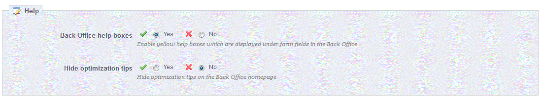 How to disable the Back Office Help Boxes and Hide the Optimization Tips