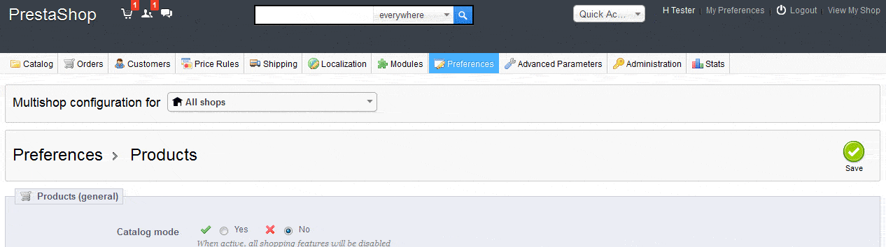 Multistore management - allows the management of multiple stores using the one administration interface. The screenshot below shows the new Multishop configuration interface.