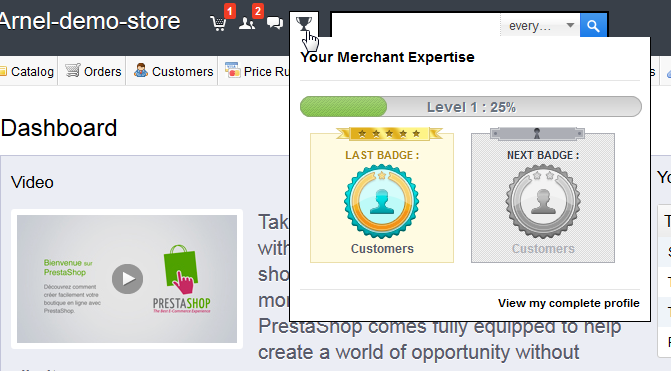 A new module called Merchant Expertise has been added. This adds a little fun and the ability to create goals that can be tracked with simple colorful icons.