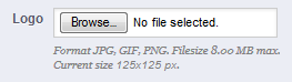 Physically, adding the logo actually occurs several blanks down, but the logo appears to the right of the screen. Go to the fourth option down, labeled "Logo" and click on Browse. The limits for the file are listed under the browse button. Here's what it says: