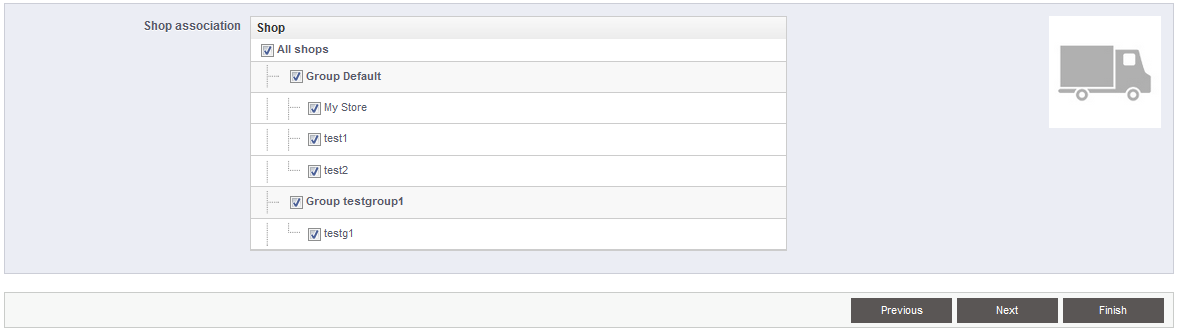 If you are using the multistore feature of PrestaShop, then you will need to use this section to make sure that the carrier is available for each of the stores you have created. If you are not using the multistore feature, then you will not need to worry about this setting.