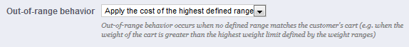 If the product is NOT within the defined range you will be able to select to disable the carrier or charge the highest defined range.