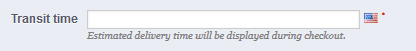 Transit time is the estimated delivery time that is used by your carrier. For example, you can say that the carrier will deliver in one day. Click on the field and then type in the estimated delivery time for your carrier.