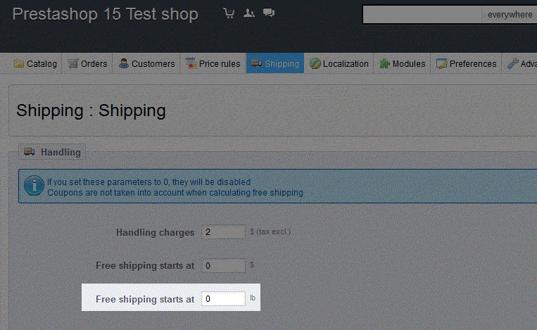 Free shipping often a good selling tactic above certain weights - though shipping & handling cost may often be worked into a product's cost at that point. The option to include free shipping based on weight (in pounds) is an option in the Prestashop 1.5 administration panel. The following Prestashop 1.5 tutorial will show you how to set free shipping based on a particular weight.