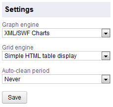 - The next option below the GRAPH ENGINE is GRID ENGINE. Currently, unless you have another grid engine loaded, the only option available will be the SIMPLE HTML TABLE DISPLAY. This will not change the data, but only the way the data is displayed.