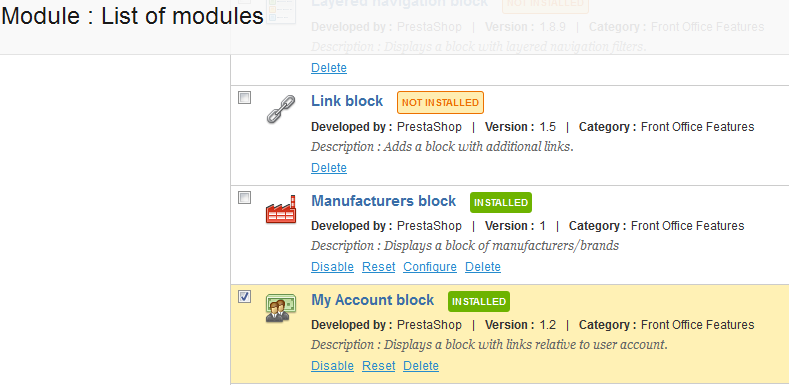 There may be times when you want to remove specific footer information from the website created by Prestashop. This can be done using the modules section of the Prestashop dashboard interface. The following article identifies these modules and explains how to disable them so that the footer information does not appear in the Prestashop front end website.