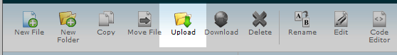 Once inside the themes you want to upload the new theme zip file from your local computer. Click on the Upload icon from the top menu bar.