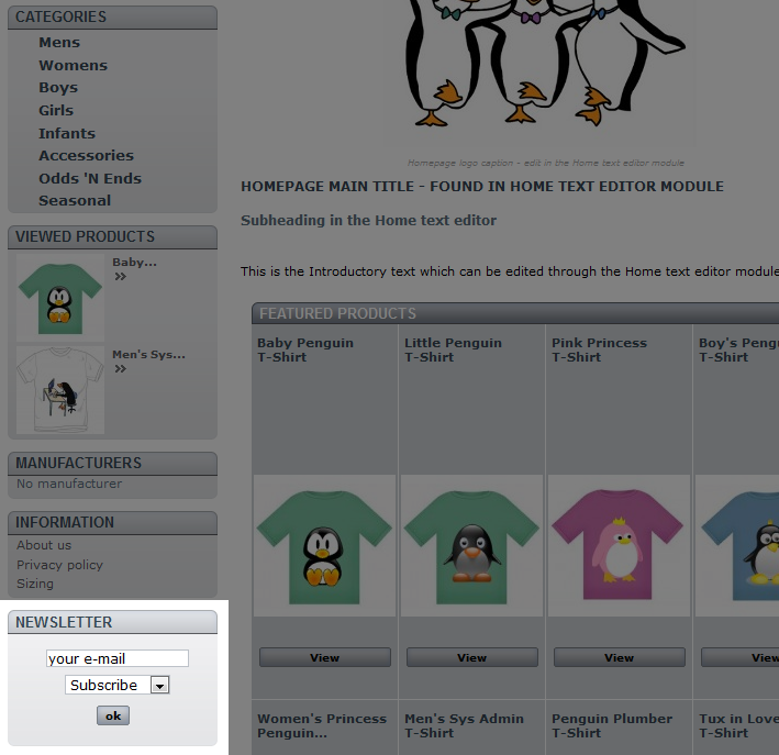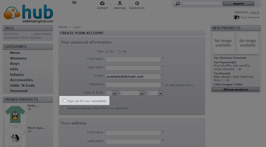 Now visitors will have two options for subscribing to your newsletter. A Newsletter block now appears in the left column of your site and when new customers are registering as users, they will see a check box they can select to subscribe to your newsletter.