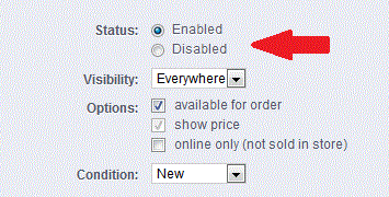 Note that this action removes the product from appearing in the storefront, but it does not remove the product from being listed in the inventory. For further information about managing product quantity, see How to Manage Product Inventory in Prestashop 1.5.