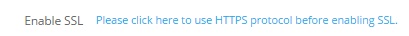 Enable SSL - allows you create a secure connection between your shop and a visitor's web browser. Requires the use of an SSL certificate. Click on the link in order to enable the HTTPS protocol before enabling SSL. If you click on this link without an SSL certificate enabled, then you will get an error.
