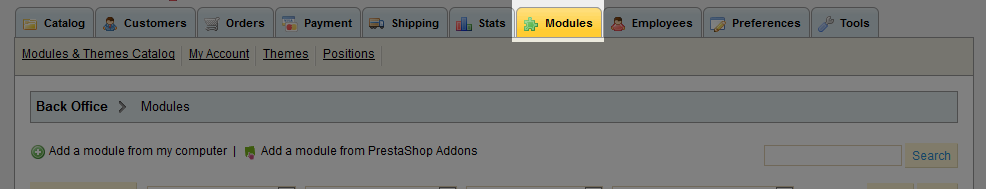 - Select the Modules tab to display your store's installed modules.
