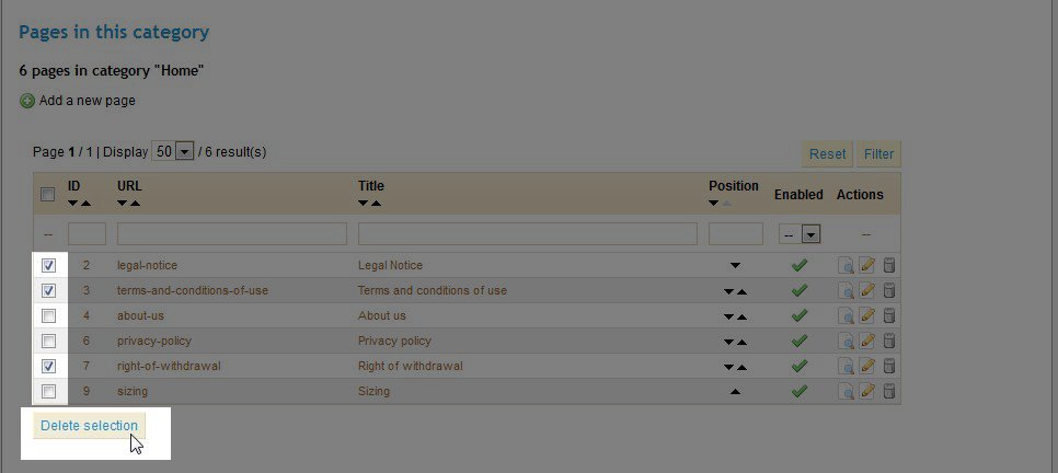 Continue deleting any other pages you want to remove from your PrestaShop site. If you would like to create or edit pages, please see our tutorials on creating a page in PrestaShop or editing pages in PrestaShop.