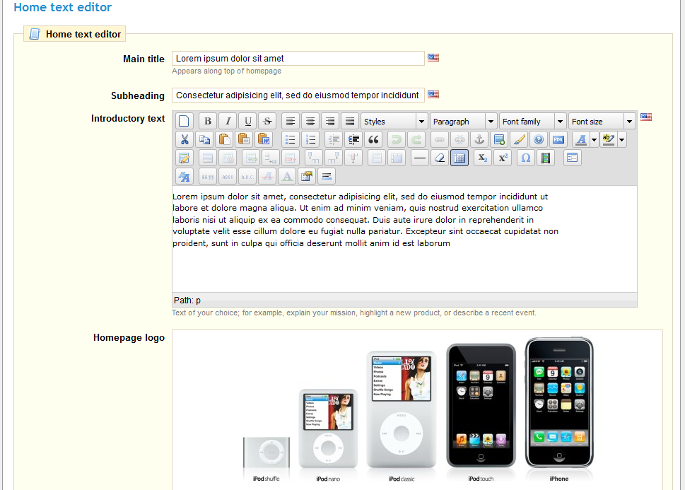 | Introductory text | Content area for your Home page text. |