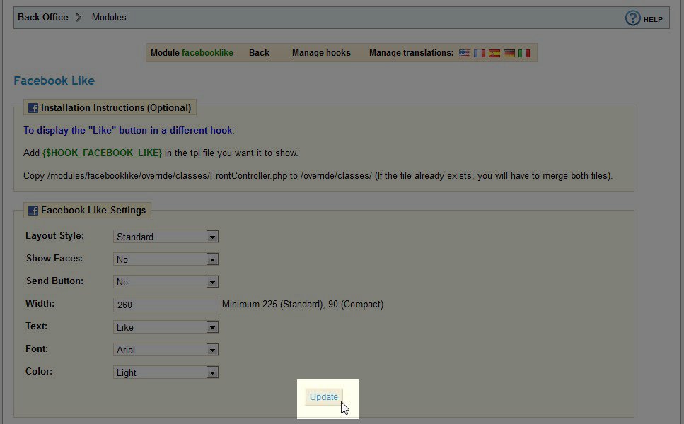 That's all it takes to add the Facebook Like Button to your PrestaShop site. Now each of your products will have a Facebook Like button under the product image.
