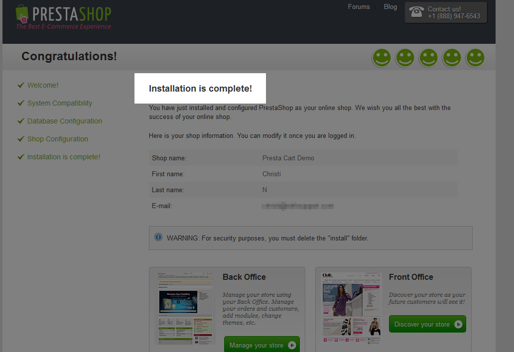 Now that we've manually installed PrestaShop, there are a few suggestions we should follow to secure our PrestaShop installation. In our next article in this series, we will learn a few easy steps to take to do this.