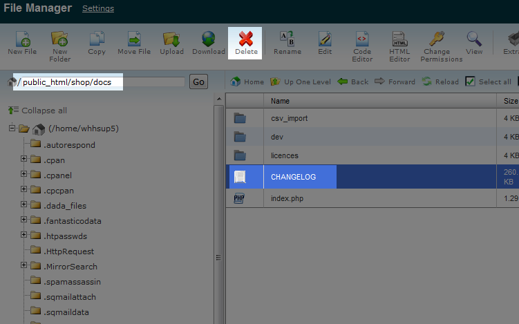 The final file that the developers recommend deleting is the CHANGELOG file. This file is also located in the docs subdirectory: