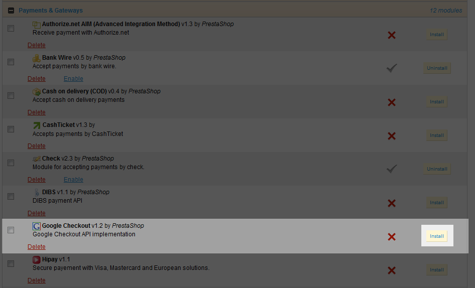 Google Checkout is a method for processing payments provided by Google that you can use for receiving payments from your customers. Integration of Google Checkout with your PrestaShop site is easily set up through the Google Checkout payment module in PrestaShop. This payment module is included by default with the full PrestaShop installation. In this tutorial we will walk you through completing the installation of this payment module and configuring it for your PrestaShop store.