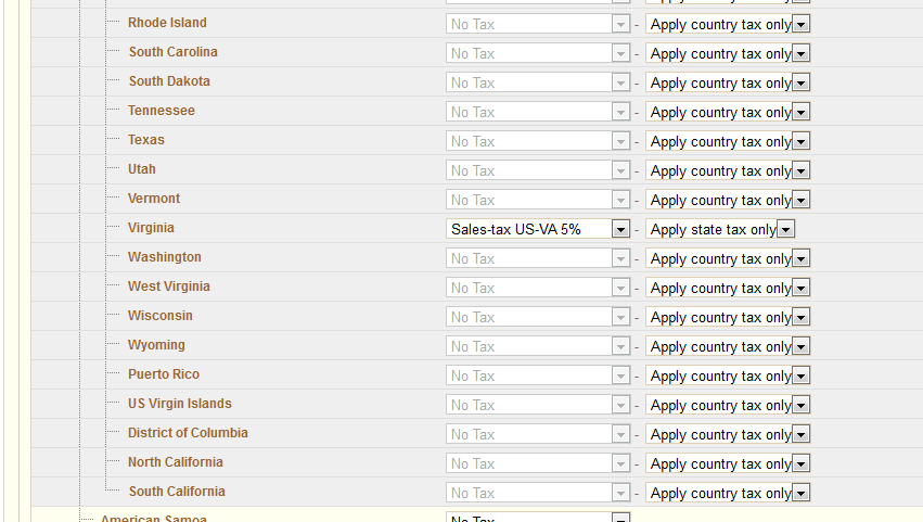 - Select the appropriate tax you want for each country or state.