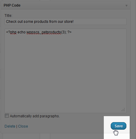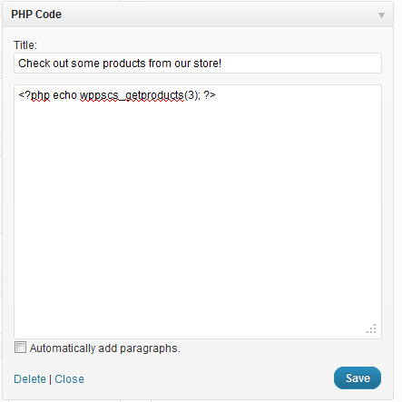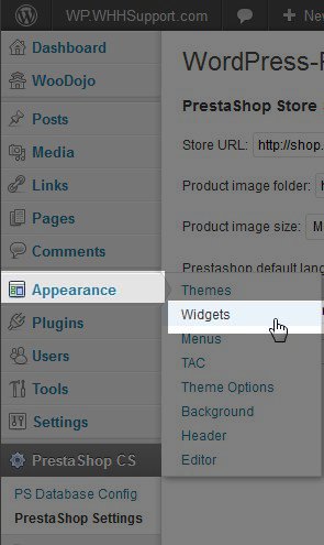 Congratulations! You've just added your products into your blog by using a PrestaShop WordPress plugin along with the PHP code widget plugin. This is a great example of how sometimes you can use combinations of modules and/or plugins to accomplish something if you can't find a single plugin or module that works for you. You can visit any page on your WordPress site that has a sidebar to see your PrestaShop products on your WordPress site: