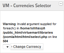 After performing an update in VirtueMart you may be receiving an error with your Currencies Selector. In this VirtueMart guide, we will show you how to remove the following error: