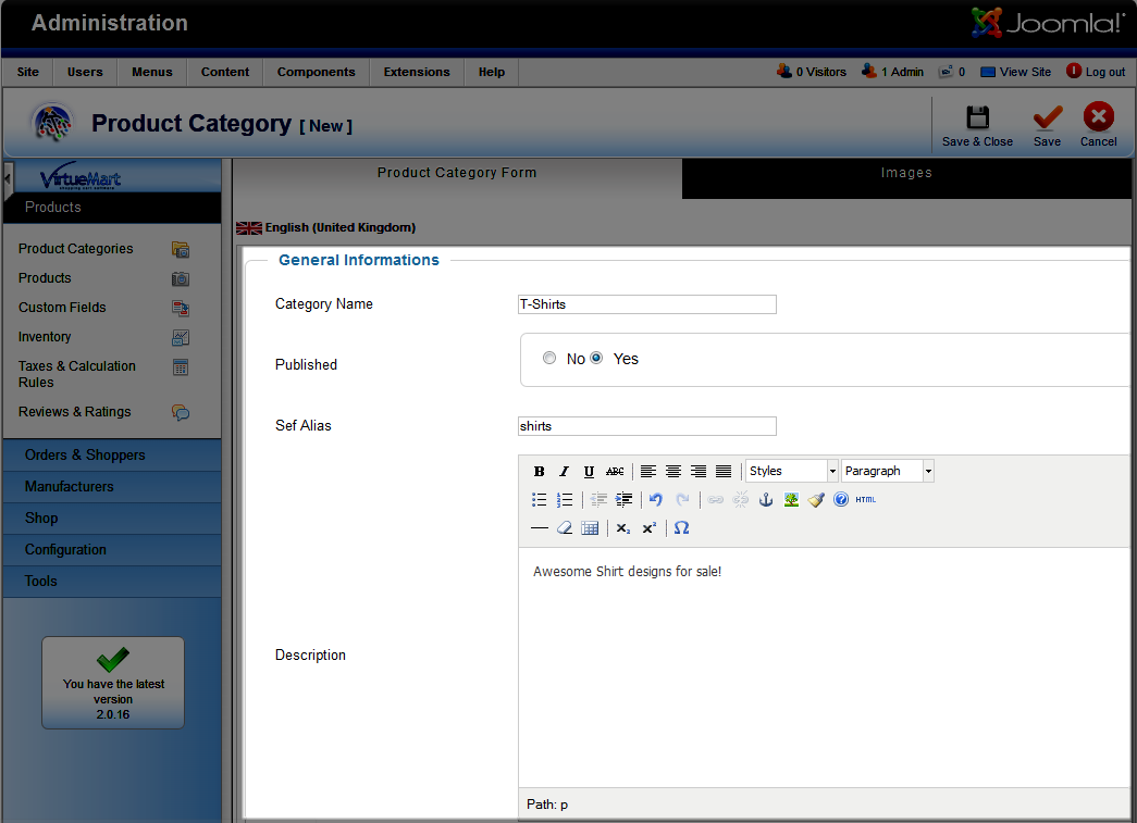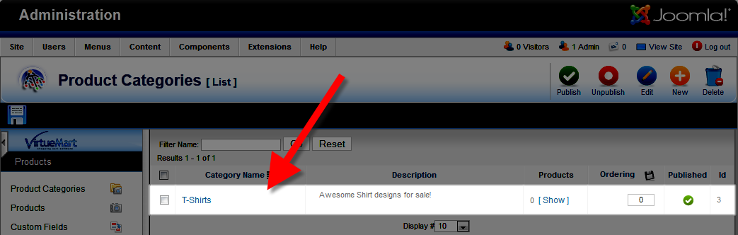 | Published | Select Yes to display this category in your virtuemart store, and No if you only want it visible in the Administration panel. |