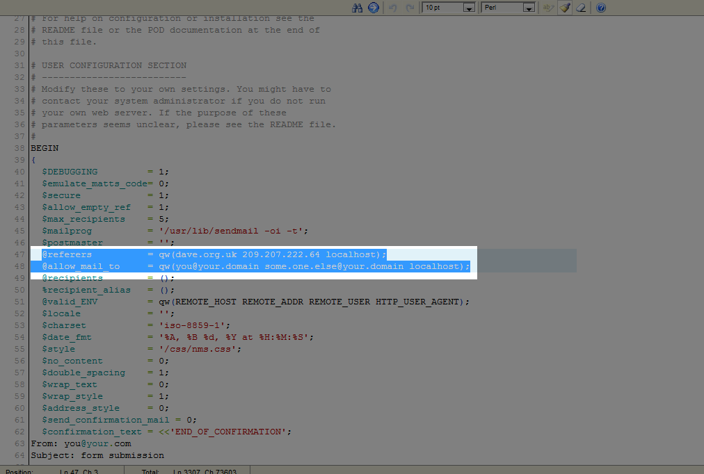@allow_mail_to = qw( This email address is being protected from spambots. You need JavaScript enabled to view it. This email address is being protected from spambots. You need JavaScript enabled to view it. );