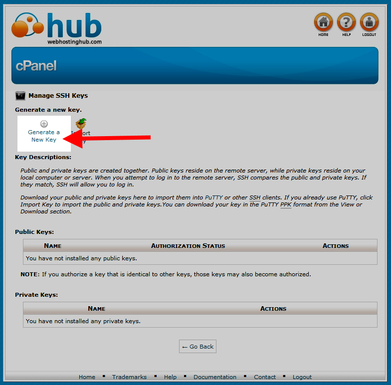 Your Web Hosting Hub account gives you the ability to connect to an account via SSH. To do this, you will need to use SSH Keys, which is different and more secure than a normal username/password setup. To do this you must generate an SSH key, then convert and download it, and finally connect using an SSH client. This article specifically uses the PuTTY SSH client. (download PuTTY here)