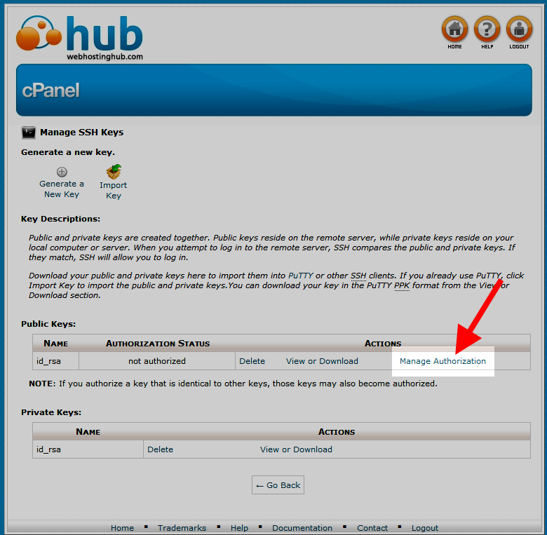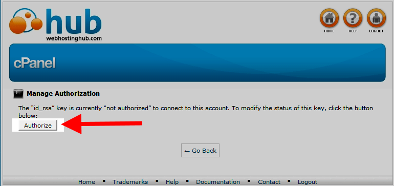 You will now see a message stating your key is not currently authorized. Click the Authorize button. The message should now change to say the key is authorized.