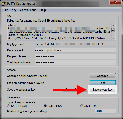 Now, click the Save private key button. This will download your private key file.