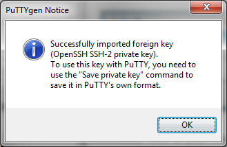 A box will appear with a message saying the key was successfully imported. Clock Ok.
