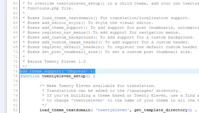 As you can see in the screenshot above, your will see a bbpress logo on the adapted theme.