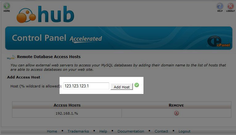 Now you will be able to connect to your MySQL Databases from the IP address you entered. You can add as many IP addresses as you need.