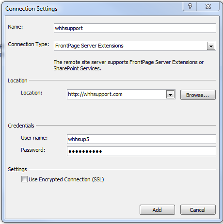 Many users of Microsoft FrontPage have made the transition to Microsoft Expression Web for creating and editing their website. While Expression Web includes built-in FTP publishing, if your site was previously created in Frontpage, files published via FTP in Expression Web may not work as expected. For more information on transitioning from working in Microsoft FrontPage to Microsoft Expression Web, please see the Microsoft's site: Expression Web for FrontPage Users.