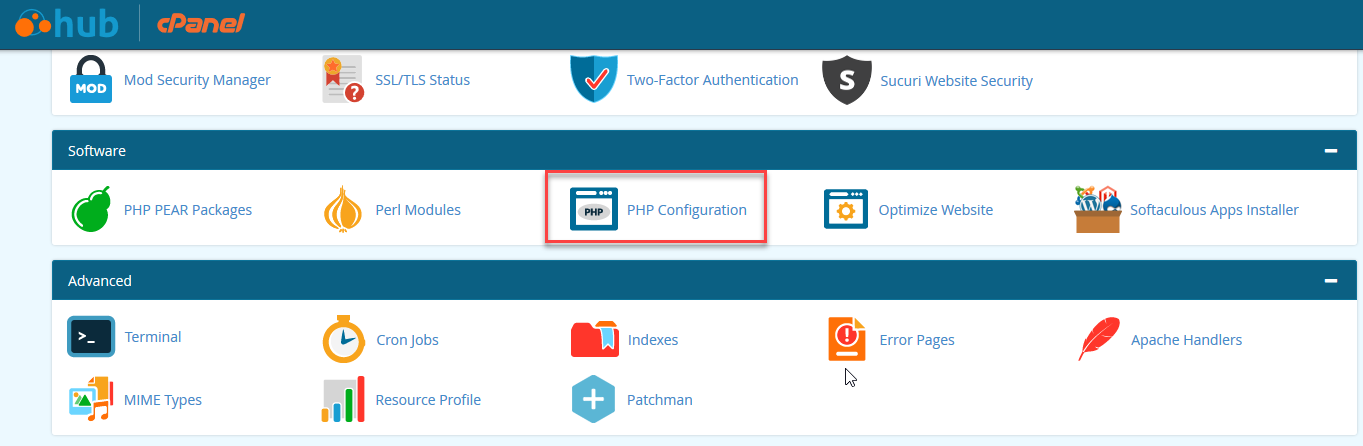 Scroll to the Software section, then click on the PHP Configuration icon.